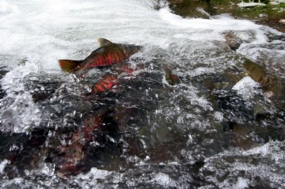 • 写真 道南支場排水口に集まったサクラマス親魚(平成17年)