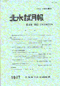 「北水試月報」とは、1944年から1987年までの水産試験場が行った試験研究結果や資料をまとめたものです。 1987年以降は北水試だより・北水試研報として発行しています。 北水試月報 創刊号 旧表紙 最終号 なお、以下のリンク先のマリンネット北海道の「データベース検索」を利用すると、キーワード検索で過去の文献のタイトル や執筆者を容易に調べることが出来ます。 データベース検索(北水試試験研究成果情報検索) 目次 41巻〜44巻 31巻〜40巻 21巻〜30巻 11巻〜20巻 1巻〜10巻