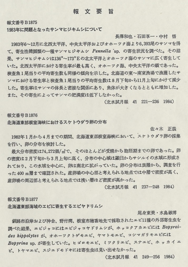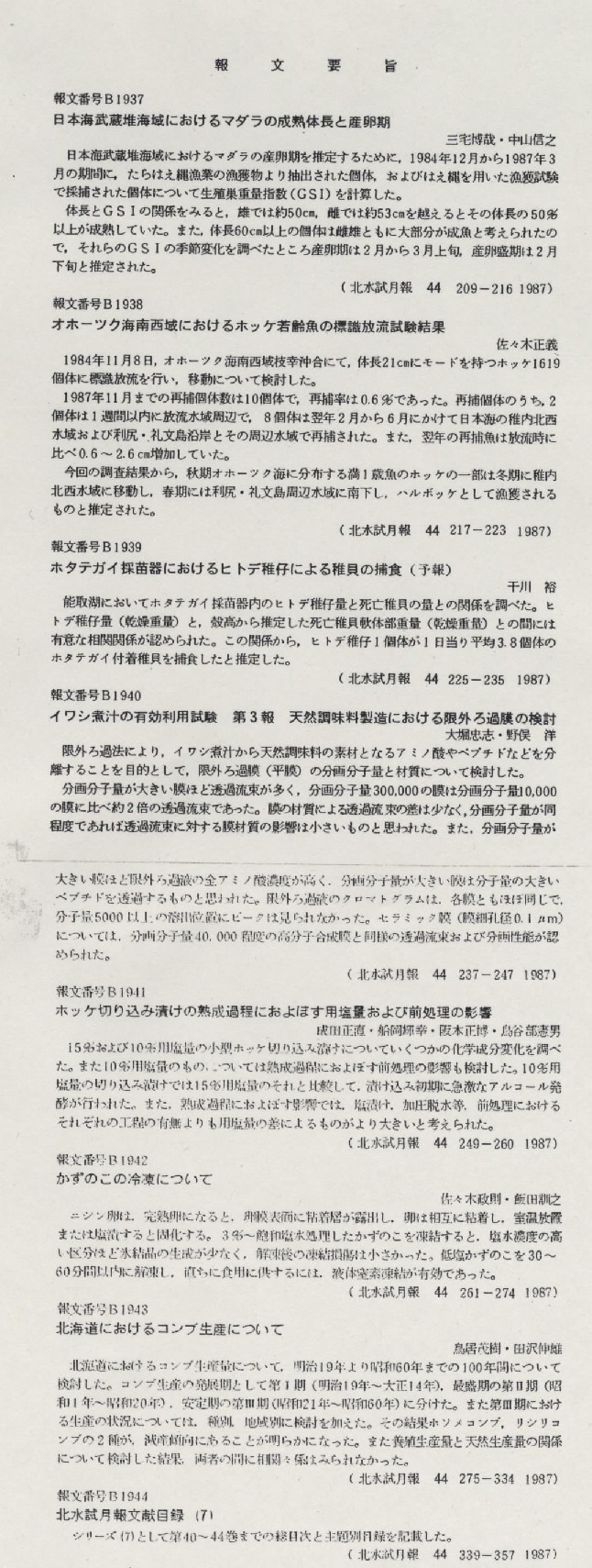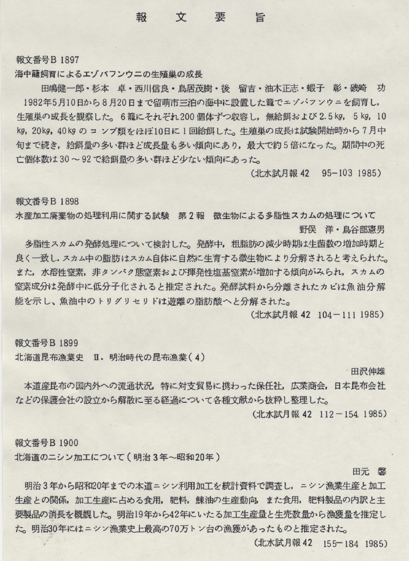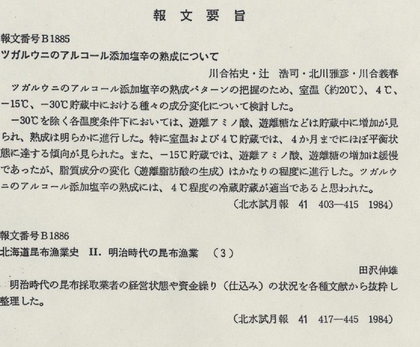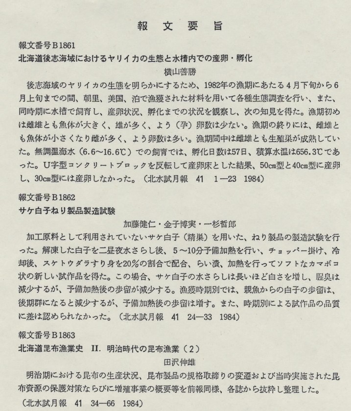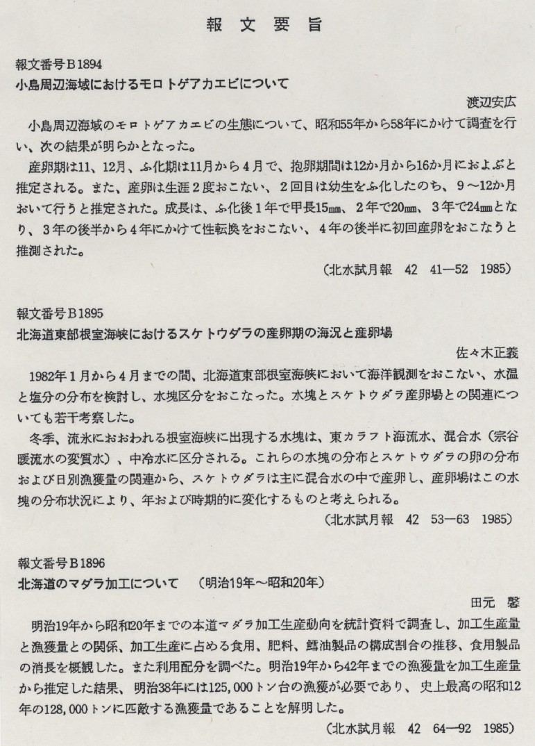 標題:戸井町汐首地先におけるエゾアワビ種苗放流効果調査-2 種苗放流効果の検討著者:門間春博・宇美房夫