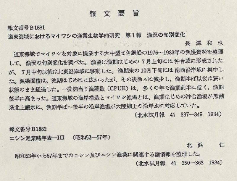 標題:道東海域におけるマイワシの漁業生物学的研究 第1報 漁況の旬別変化