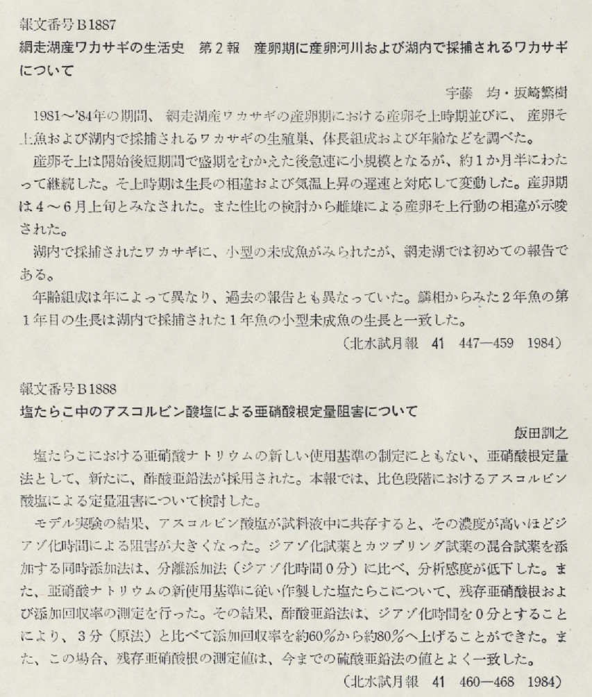 標題:ブナザケ利用試験 第1報 ブナザケ肉成分の冷凍貯蔵中の変化