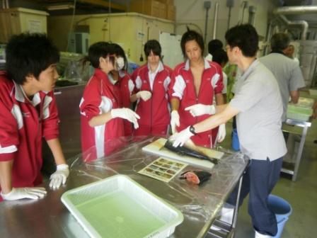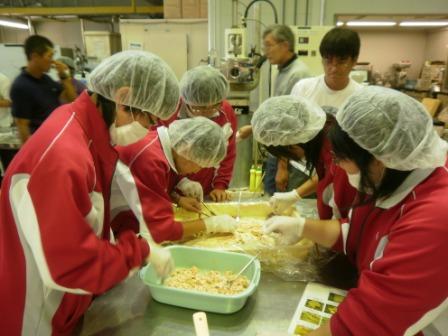 生徒達は当場の研究職員から手ほどきを受け、馴れない手つきながらも一生懸命体験授業に取り組み、食文化の重要性について学んでいました。