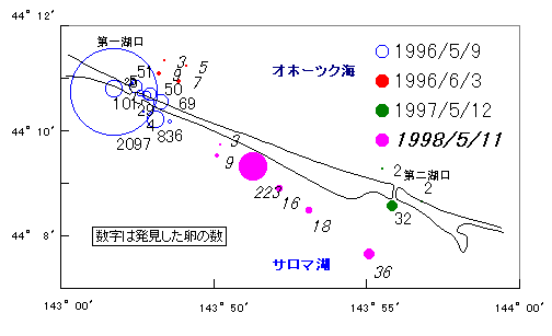 サロマ湖内のみならず、外海でも産卵が確認されました。