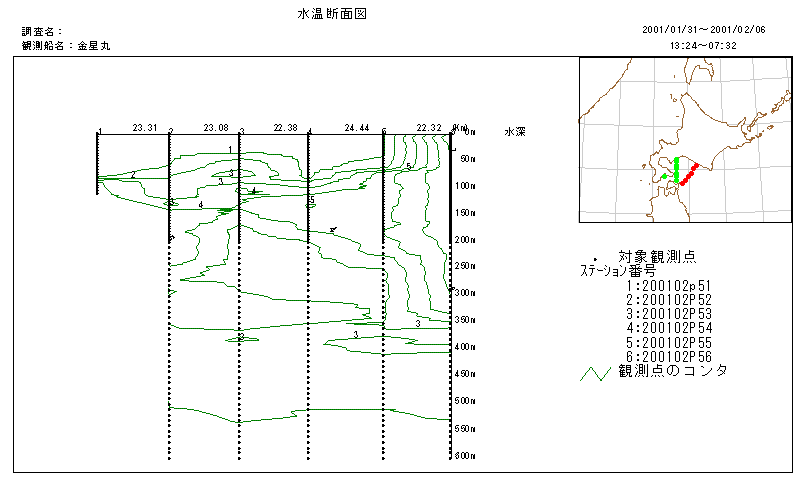 | 中央水試(おやしお丸) | 平成13年 1月26日から同 1月28日および31日 | (道西日本海海域) |