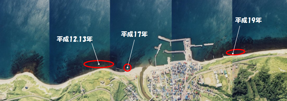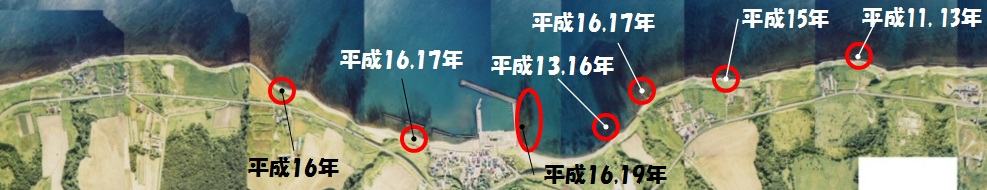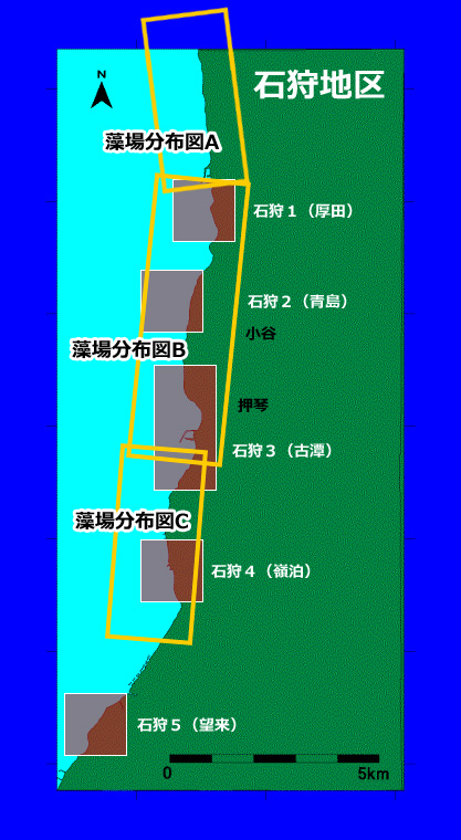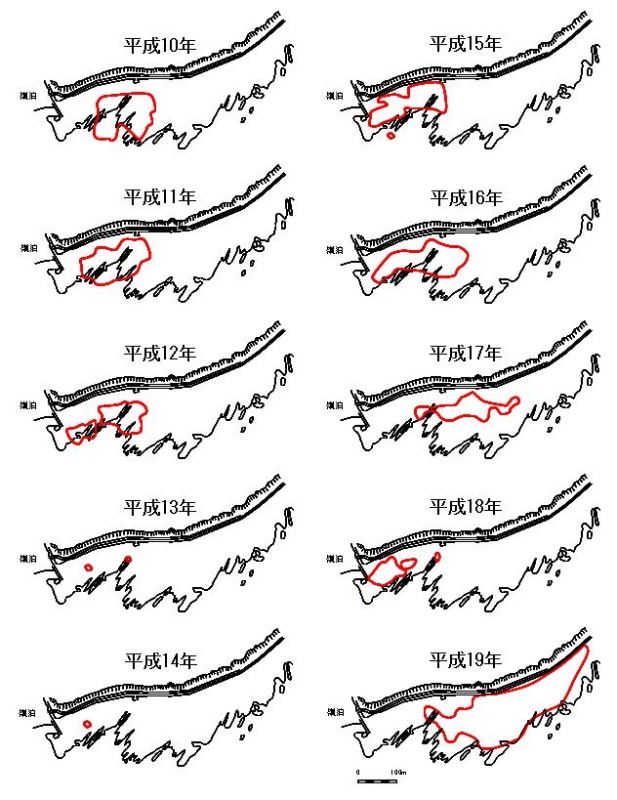 厚田区嶺泊における平成10~19年のニシン産卵床の範囲