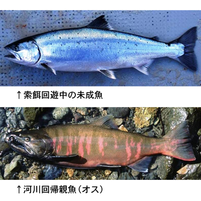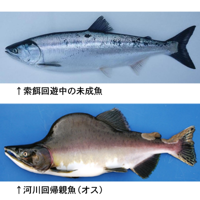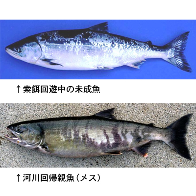 「さけます」とは北太平洋に生息するサクラマス、ギンザケ、マスノスケ、ベニザケ、サケ、カラフトマスのサケ属魚類6種のことで、英語では "pacific salmon" と呼ばれています。このうち北海道において漁獲量が多いのはサケ、カラフトマス、サクラマスの3種です。 これら3種は川で生まれ、海で育ち、親となって自分の生まれた川へ産卵のために戻ってきます。北海道では昔からこの習性を利用して「さけます」を人工的に増やす取り組みが各地で行われています。 漁獲量が多い3種(サケ、カラフトマス、サクラマス) サケ カラフトマス サクラマス 目次 サケ科魚類の分類 サケ科魚類の検索 さけますの生活史 さけますの回遊経路 お問い合わせ先 さけます資源部 住所:〒061-1433 恵庭市北柏木町3丁目373番地 電話番号: 0123-32-2135 ファックス番号:0123-34-7233