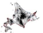 | 野生魚の遡上調査 | 野生サケが確認された河川(赤) 、確認されなかった河川(白) | DNAを解析し、集団を比較 |