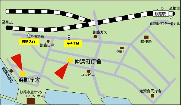 - 浜町庁舎 釧路駅からバス(新富士新野線)副港入口下車 徒歩5分