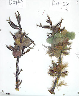 ハタハタの卵塊(ブリコ)は、おもにウガノモクという海藻に産みつけられます。ハタハタは比較的大きなウガノモクを選んで産卵するようです。