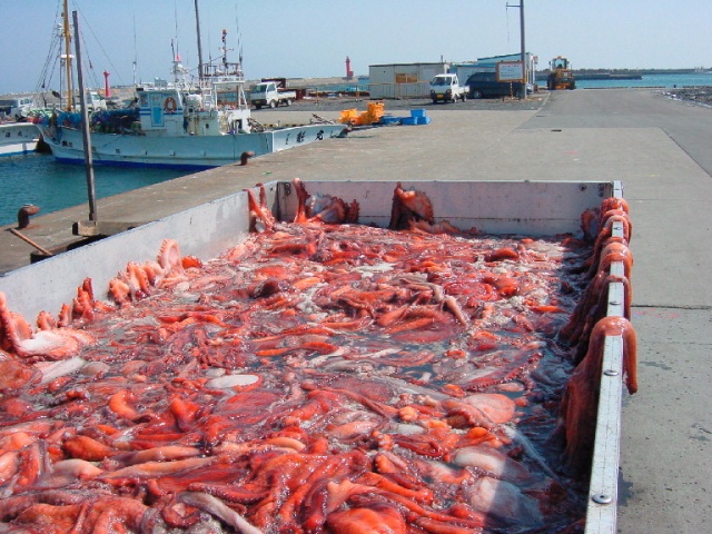 たこいさりびき、樽流し、たこかご、たこ箱、空釣り縄、たこかぎなどで主に漁獲されますが、他の漁業でも混獲されます。宗谷、留萌支庁では約5000~10000t漁獲されています。