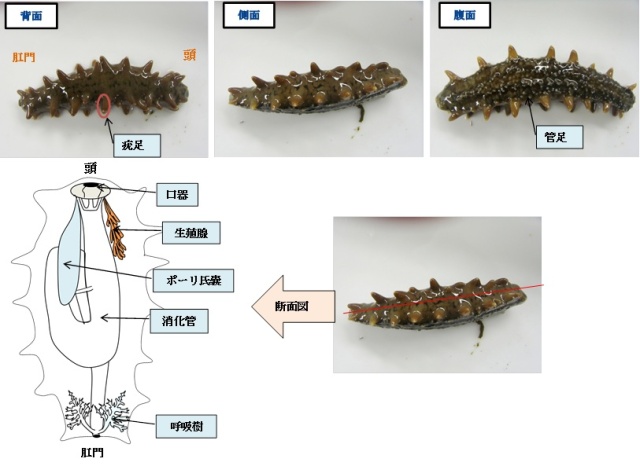 分類:棘皮動物門ウニ形亜門ナマコ綱盾手目シカクナマコ科マナマコ属マナマコ