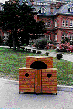 ごみ箱(ふくろう)Trashbox(HUKURO) 材種:カラマツ材 北海道をアピールするために、北海道東部にしか生息していないといわれる“しまふくろう”をモチーフとした分別収集用ごみ箱です。 |