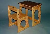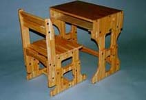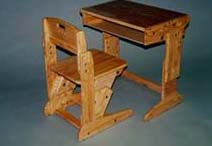 学童用机・椅子 組立式可動型「T.K Type」 JIS 2号~8号サイズ 材種:カラマツ集成材(3層構成) 天板表面にはメラミン樹脂を含浸・圧密処理したカラマツ単板を使用しました。なお天板はリバーシブルとなっています。 |