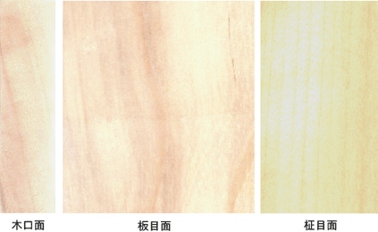 散孔材。年輪ははっきりしない。心材は白色~淡褐色,辺材は白色で心材・辺材の境界はやや不明。全体に淡く緑や紫を帯びることがある。変色しやすい。