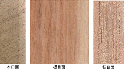 散孔材。早材から晩材にかけて太い道管が集中する(写真(木口面))ことから「半散(環)孔材」とも呼ばれるもので,一般的な散孔材に比べ年輪がややはっきりしている。心材はくすんだ褐色,辺材は灰白色で,心材・辺材の境界はあきらか。艶があり,木理が美しい。強靱で衝撃吸収性が高く,割れ目ができにくい。加工がしやすく表面仕上がりが良好。狂いが少ない。