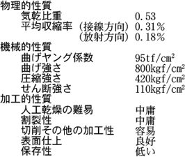 引用(木材の性質に関する数値等)