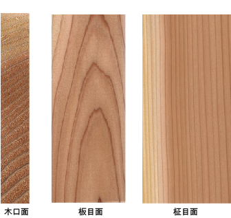 心材は色の変異が大きく,淡紅色(通常,赤心(アカジン)と呼ぶ)から黒褐色(黒心(クロジン)),辺材は淡黄白色から淡褐色。心材,辺材の境は明らか。年輪ははっきりしており,肌目はやや粗い。日本の針葉樹の中では軽軟な部類に入り,木理もまっすぐなので加工がしやすい。乾燥が容易。心材の保存性は中庸だが,水湿や虫に比較的強い。独特の芳香をもつ。天然木と植栽木,成長経過等の違いにより,比重や強度,硬さなどの値が著しく変動する。