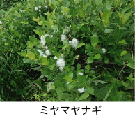 |  その他の広葉ヤナギ類 ・ミヤマヤナギ(ミネヤナギ) Salix reinii Franch. et Savat. 亜高山から高山に生える。 ・タライカヤナギ Salix taraikensis Kimura 道東の湿原に生える。 ・バッコヤナギ Salix bakko Kimura エゾノバッコヤナギと酷似するが,小枝の皮を剥いだ裸材に隆起線条がある。 道内では南西部に分布。  |