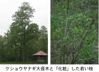 |  ●ケショウヤナギ属 名称 和名:ケショウヤナギ 漢字表記:化粧柳 学名 Chosenia arbutifolia (Pallas)A.Skvortsov 分布 北海道(十勝,網走,日高),本州(長野県), 朝鮮半島からカムチャッカにかけての大陸極東部,サハリン 生態・形態 玉石の多い河原に生え,高さ25m,太さ1mに達する。十勝川水系が分布の中心であるが,国内では長野県上高地の梓川に隔離分布する。紅色の枝と白紛を帯びた小枝との対比が美しい。果穂は垂下し,ヤナギ科では珍しく風媒花。  |