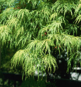 落葉広葉樹,イロハモミジの変種で葉の色が春から秋まで紅紫色で,枝が枝垂れる品種の総称。葉が緑色のものはアオシダレという。葉は深く細かく裂ける。