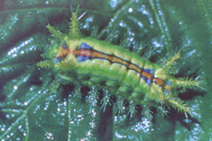 写真1 老齢幼虫、体長11mm。中川、シラカンバ。2000/8/24。  |