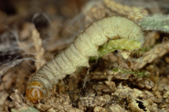生態 年1世代のようである。幼虫は春に集団で虫糞と枯れ葉をつづって巣を作る。食害は6月に目立つ。巣の中で繭を作り蛹になる。成虫は7月に出現する。
