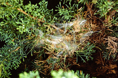 被害と防除 庭などのミヤマビャクシンで多発することがある。春に巣を取り除いて駆除する。
