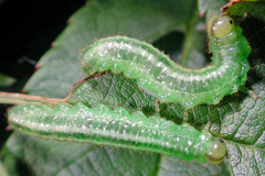 | 注) | バラ属には良く似たチュウレンジバチやアカスジチュウレンジも発生する。これらの幼虫は胸腹部の背面に白線がないなどの点で区別できる。 |