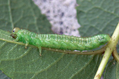写真3 中齢幼虫、体長11mm。七飯、ノイバラ、2006/9/8。 |