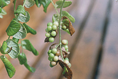 写真1 虫えい。美唄、温室のハマナス、1986/5。  |