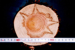 | 幹の横断面に☆状の変色がある。 | |