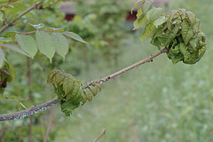 | 状態 | モクセイ科では新葉が縮れる。アブラムシが多数みられる。  トドマツ苗木が枯れる。根にアブラムシがいる。  |