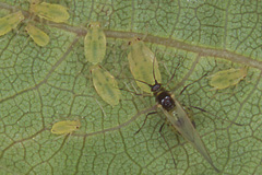| 虫 | 体は緑色、体長最大2mm。翅のある成虫は頭部や胸部などが黒い。 |