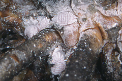 | 注) | マツ属では白い粉状の物質を分泌する害虫として、他にカサアブラムシ類やマツモグリカイガラムシがある。カサアブラムシ類は体長1mm程度で肉眼では分かりにくく、白い糸状の分泌物で覆われる。マツモグリカイガラムシは寄生により枝が曲がる。 |