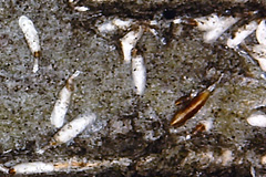 | 虫 | 最大長約3mm。白色だが、表面の白い殻が取れると茶色になる。 |