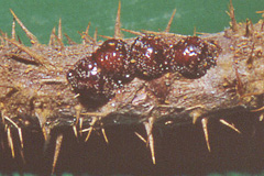| 状態 | 枝が枯れる。球形のものが固着する。長さは最大5mm。 |