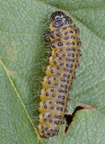 写真1 幼虫、体長11mm。新得、ノニレ。1991/7/12。  |