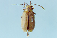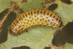 生態 卵で越冬.幼虫は新芽の頃に孵化する.葉に穴を開けて食べる.5月末~6月中旬頃に十分成長し,土中に潜り蛹になる.2~3週間で成虫が羽化し,葉を食害する.秋に若枝に卵をまとめて産み付ける。