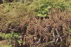 | 状態 | 葉に多数の小さな穴があき、やがて茶色に枯れる。幼虫(5~6月)や甲虫(成虫、7~9月)がみられる。 |