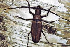 生態 成虫は朽ち始めた枝の切り口など腐朽部位に産卵し、幼虫はそこから材内深く穿孔し、健全な材部にも侵入する;幼虫は材部を食べて成長し、木くずを外に排出する;1世代に2年以上を要する;成虫は夏に出現、夜行性で日中は幹の根元や腐朽部位に隠れている。雌成虫は幹や枝の腐朽したところに産卵する。