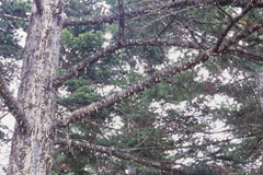 写真3 被害トドマツのヤニだれ。余市町、1999/11/9。  |
