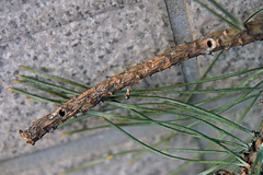 写真1 被害枝、ヨーロッパアカマツ。函館市、2000/12/7。  |