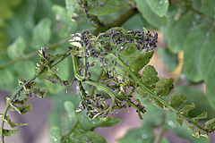 ハリエンジュアブラムシ ハリエンジュアブラムシ 葉が黒ずんだり、新梢が縮れる。小さな虫が群棲する。体長最大2mm。春~夏に発生。