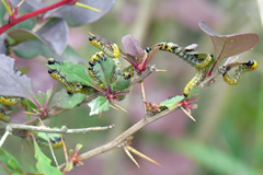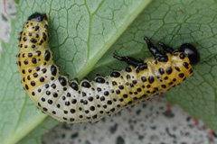 ハサミルリチュウレンジ ハサミルリチュウレンジ 幼虫は集団性。体長最大25mm。成虫は体長約10mm。7~9月に出現。