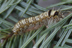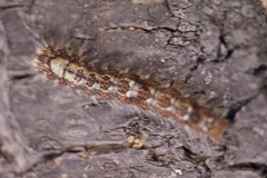 <カレハガ科・ドクガ科の幼虫> 体毛は長い。腹脚は5対(毒毛を持つ種がいるため、透明容器に入れ観察する)。