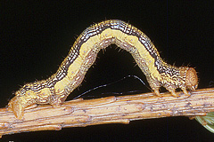 ミスジツマキリエダシャク ミスジツマキリエダシャク 体長最大約40mm。8月にカラマツ林で発生、近くのトドマツなどを食害することがある。