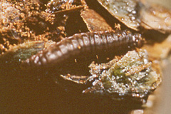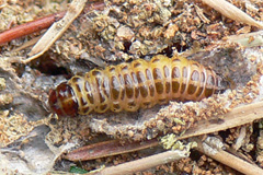 <コガネムシ科の幼虫> 胸脚が長く、体をC字に丸める。