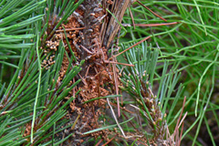 | 松ぼっくり・種子 | しいなになる。虫糞が付く、変色する、中に虫がいる。 |