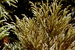 エゾスギツメハダニ エゾスギハダニ 春から夏に葉全体がかすんだように褐色に変わる。針葉に白~褐色の斑点がじゅず状につながって現れる。針葉の四隅にも被害が現れる。