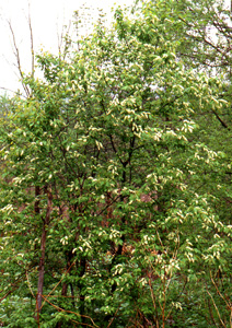 生態:落葉広葉樹,高さ15m,太さ40cmほどになる。平地~山地のやや湿った場所に生える。葉が開くのが早く,鮮やかな緑色をしている。
